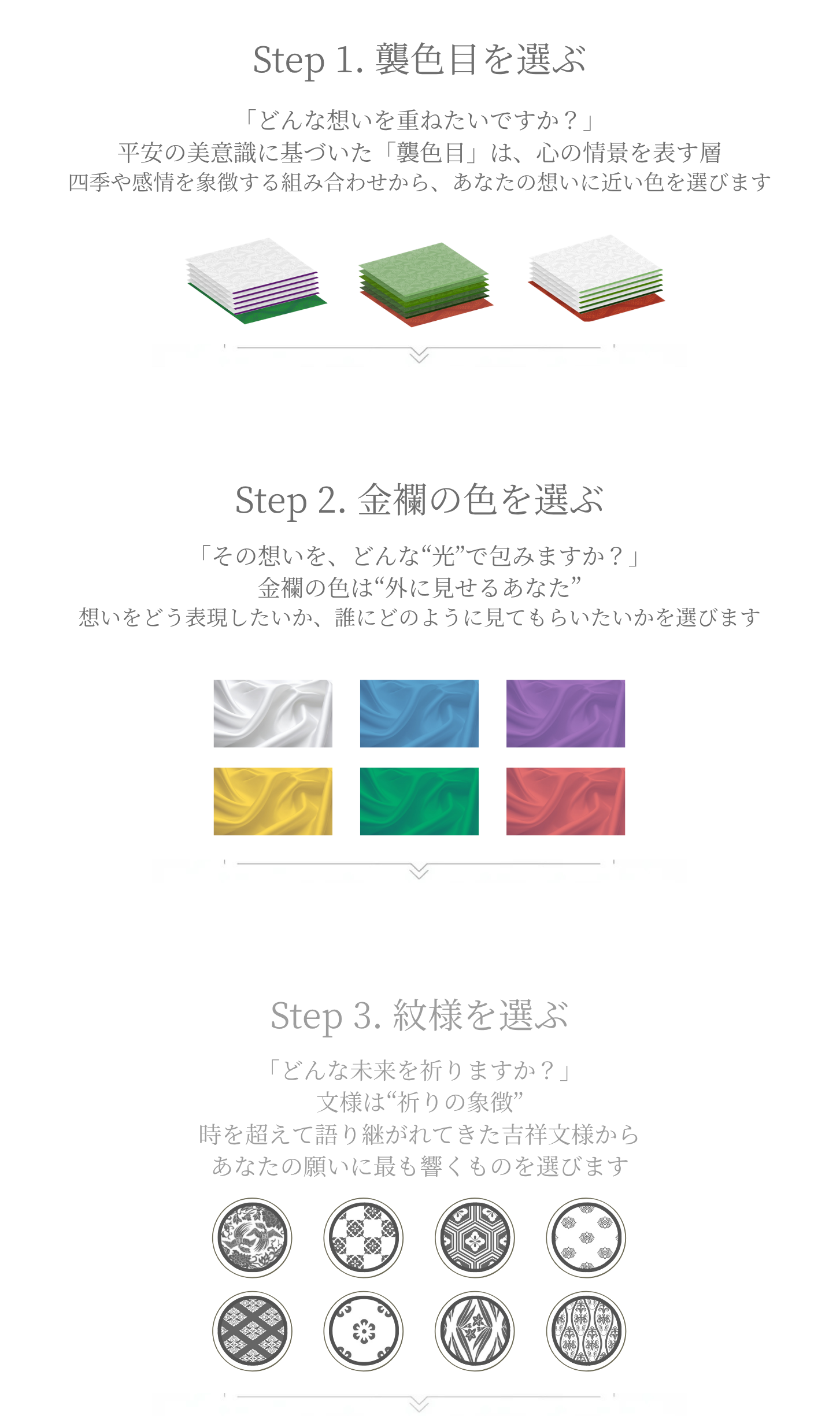 同時に、十二単の「重なり(kasnari)」の響きも重ねており、人の想いが重なり合って形になるというブランドの理念を表しています。